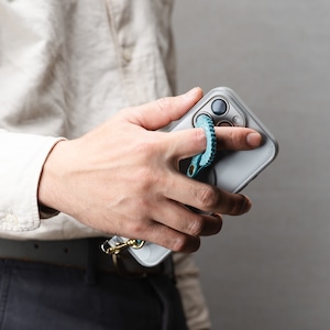 ③スマホに装着する使い方も可能です。チャームとしてお楽しみください。フラワーチャームに指を通すとちょっとした落下防止にもご活用いただけます。