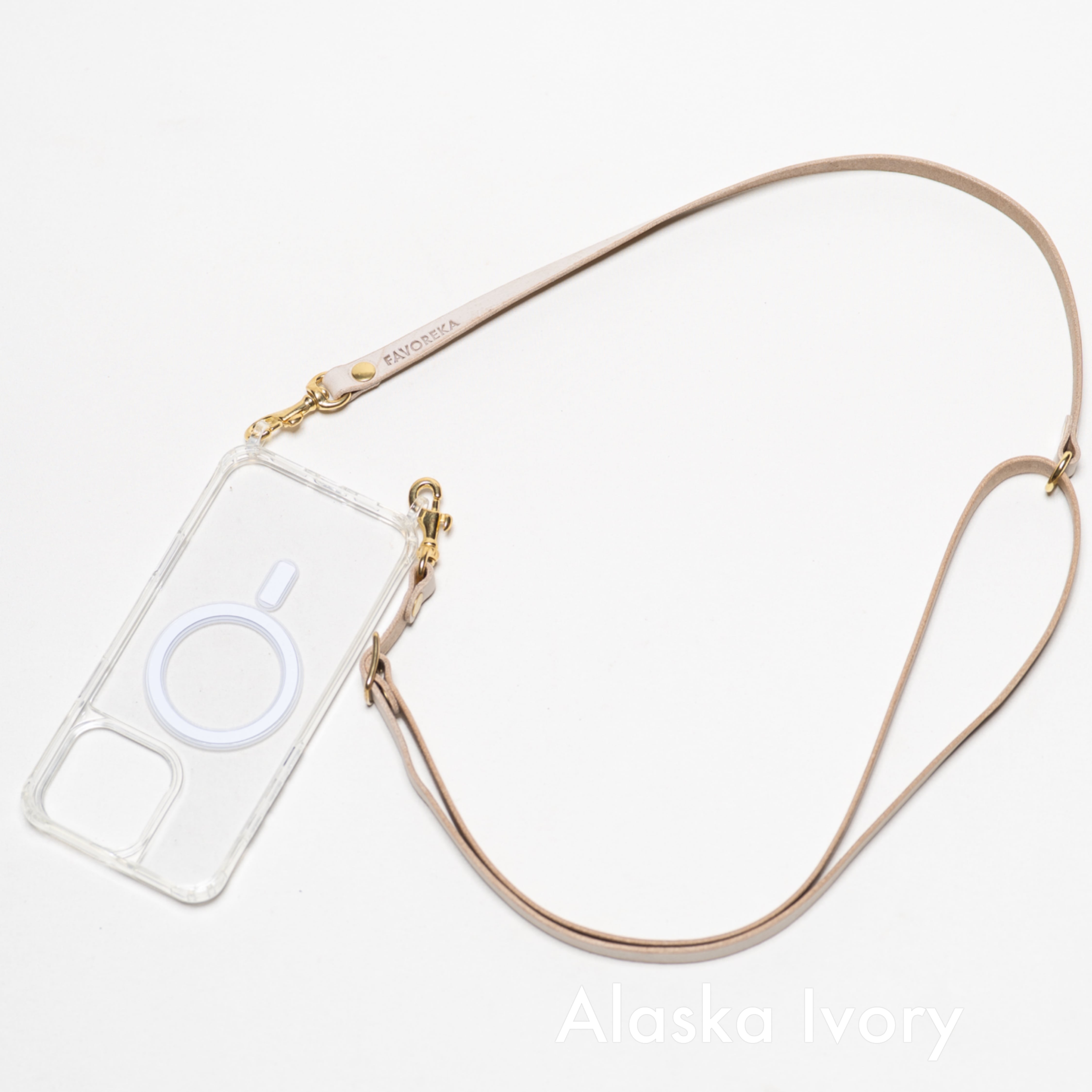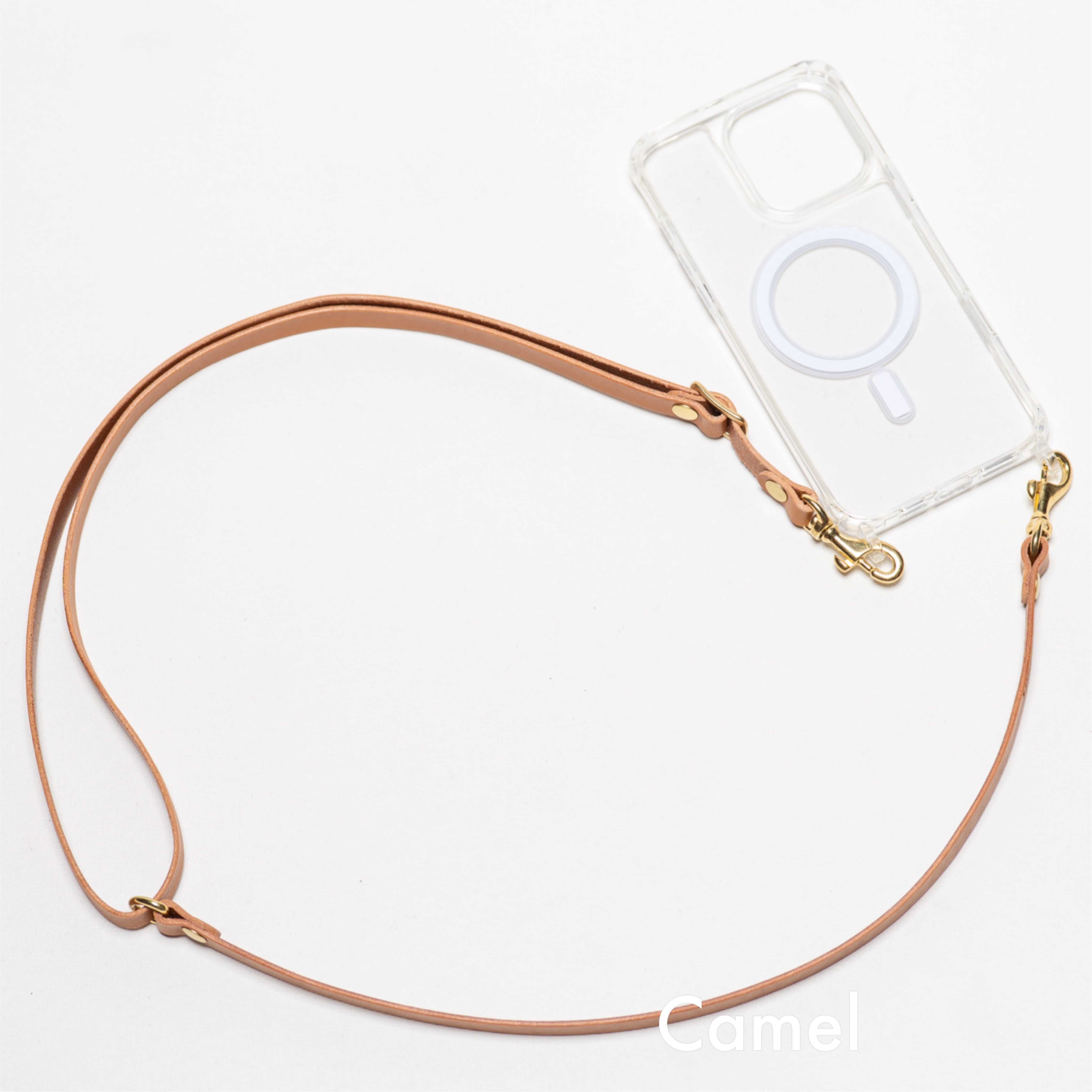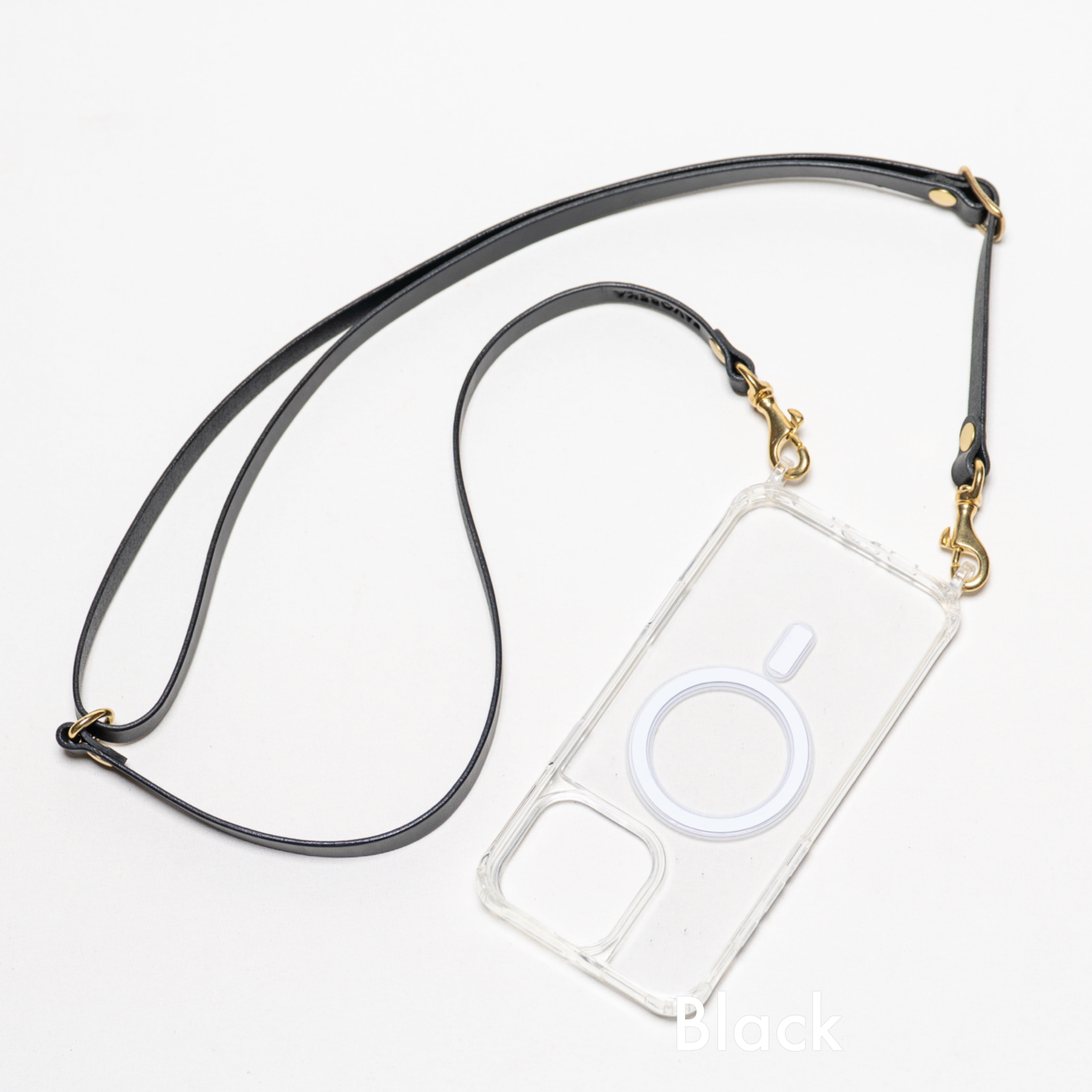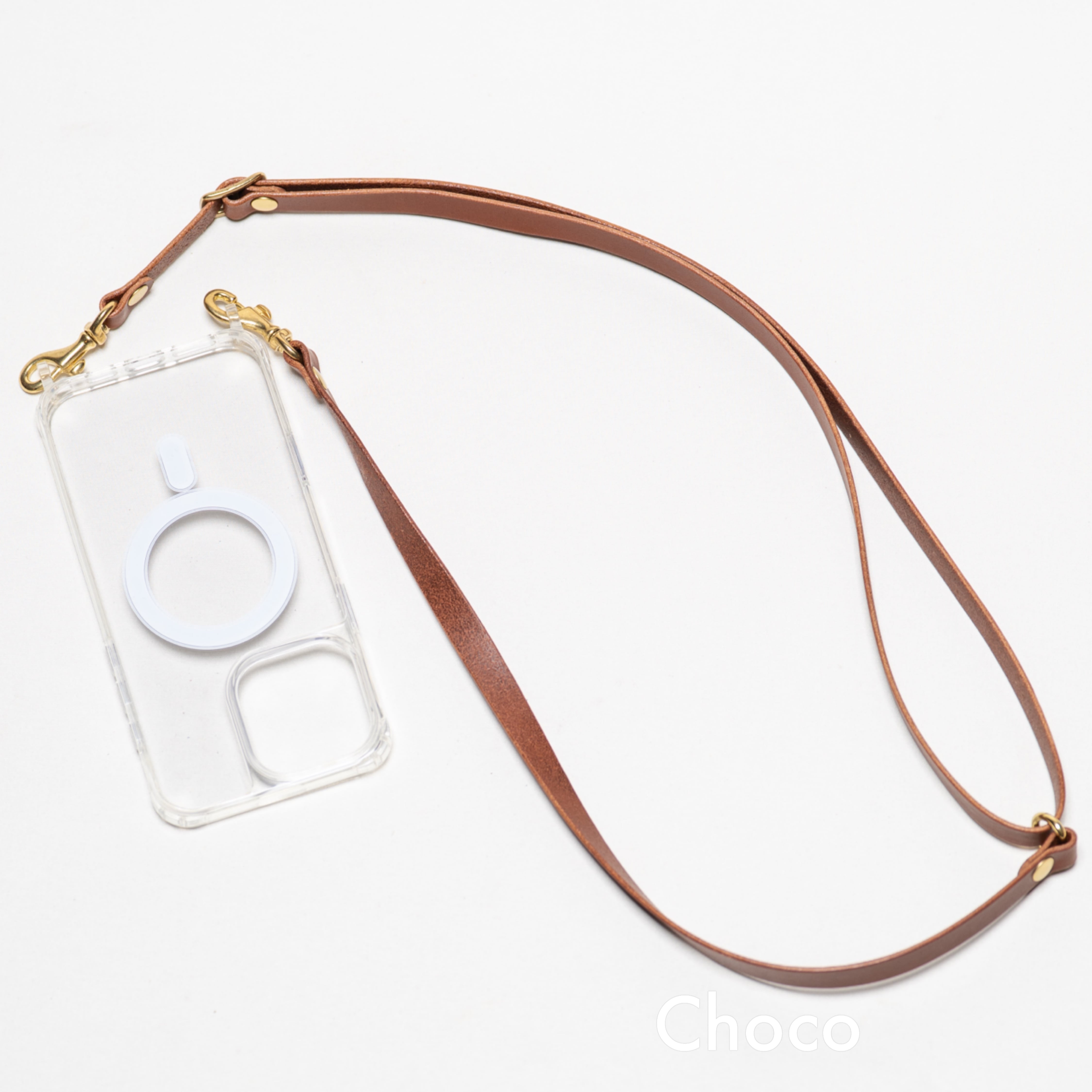 お使いのスマホカバーに取り付けて使える、レザーのショルダーストラップ。