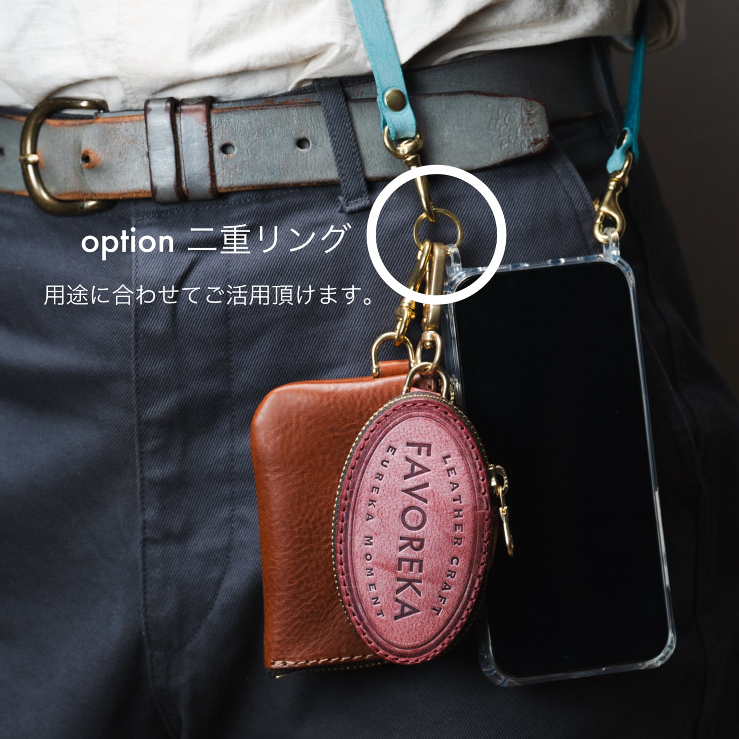 二重リングを取り付けることで、ナスカンのついたアイテムをスマホと一緒に下げられ用途に合わせて持ち物をまとめられる仕様になります。