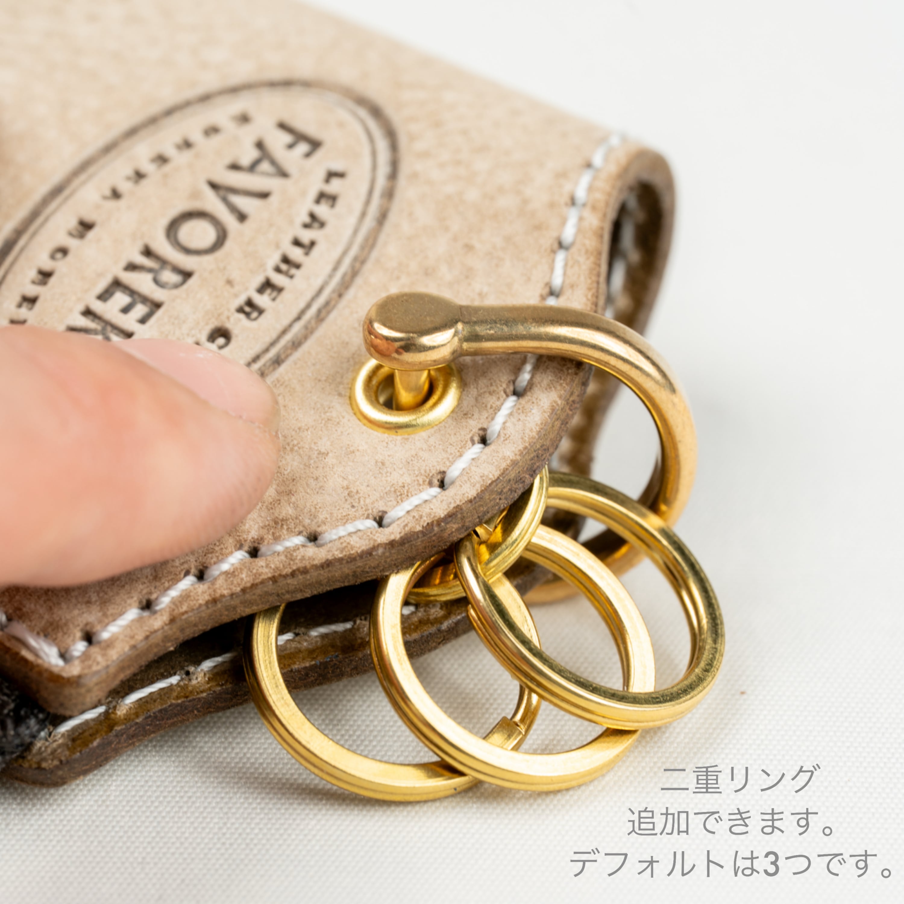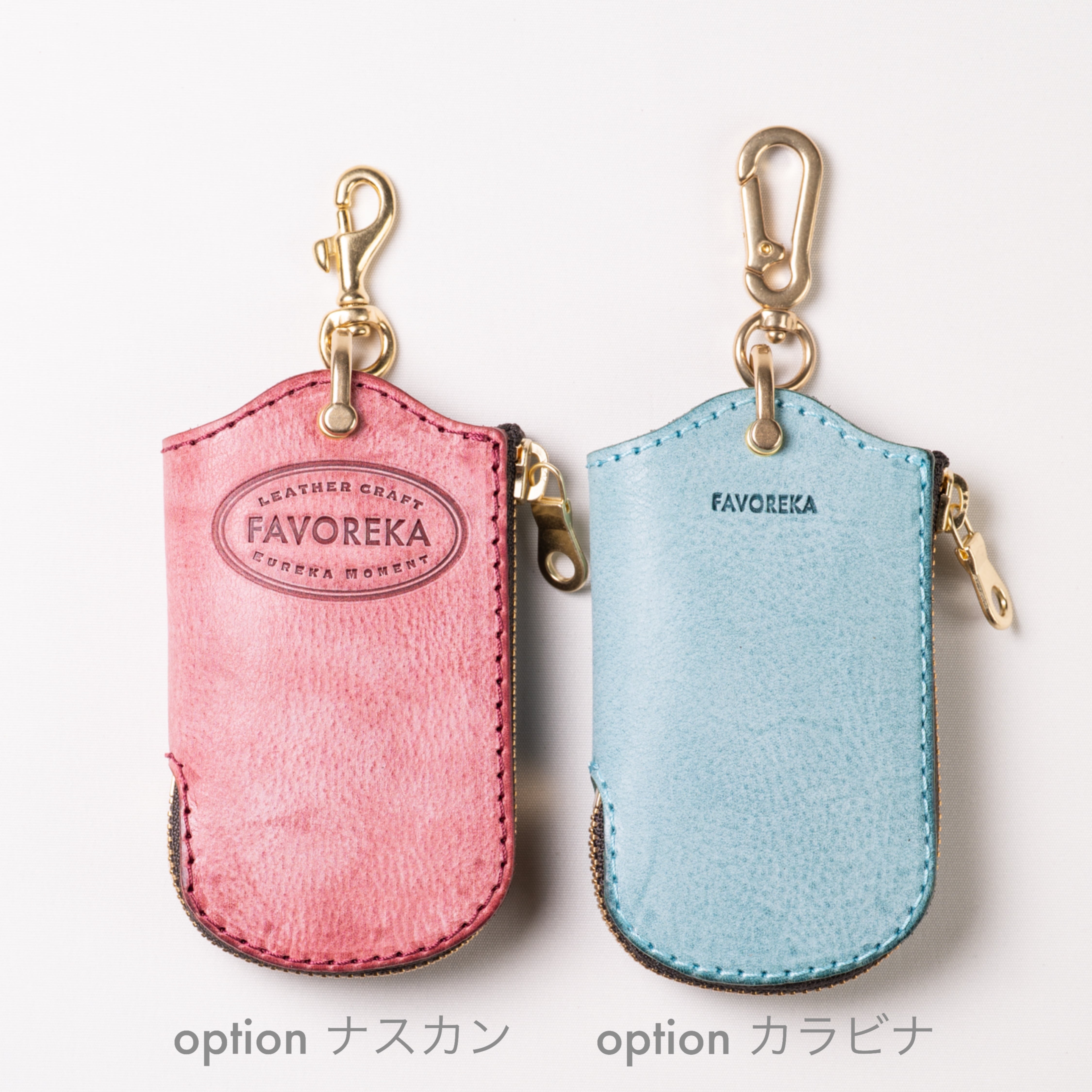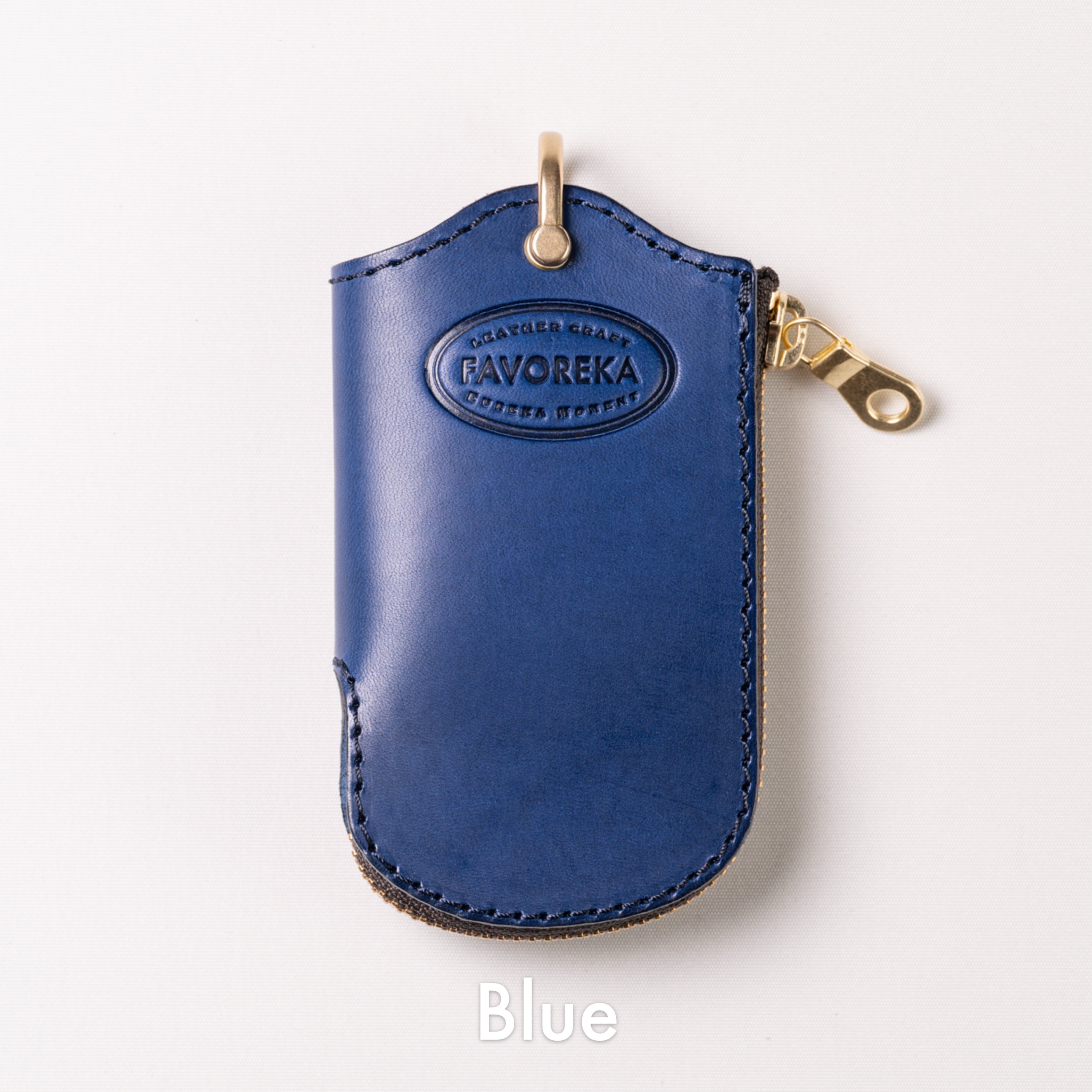J ZIP カードキーケース アルファベットのJのように開くファスナー、カードが後面に収納できるキーケース。 とても大きく開き、使いたい鍵をすぐ取り出せます。 [革]アラスカ、ブルガロ、クラスト(ブルー) [サイズ] W 6.5cm × H11.5cm × D1.5cm スマートキーにも対応したサイズ感です。大きすぎないサイズで握り心地がいいのも特徴です。 毎日触れるものだからこそ、経年変化を楽しめる革と真鍮をお楽しみください。 内側のリングは標準で3つ。オプションで追加できます。 上部についたD管は二つの強みがあります。鞄やポケットから取り出す時にここに指をひっかけると取り出しやすいです。また、鞄の中で迷子にならないように繋げる際にも便利です。 そしてオプションでナスカン、カラビナを追加できます。お鞄のDカンやベルトループなどに取り付けることができます。 ナスカチャームホルダーやミニナスカンチャームホルダーなどのナスカンのついた商品と合わせてご活用いただけます。用途やスタイルに合わせてお楽しみください。 FAVOREKAの豊富なイタリアンレザーからお客様のお気に入りの一色を見つけてください。 そしてカード機能がないよりスリムな兄弟品番のJ ZIP キーケースもあります。 中世の盾のような形に仕上がり気に入っています。 FAVOREKAのイタリアンレザーを贅沢に使ったJ ZIPカードキーケースで、暮らしやすい毎日を。