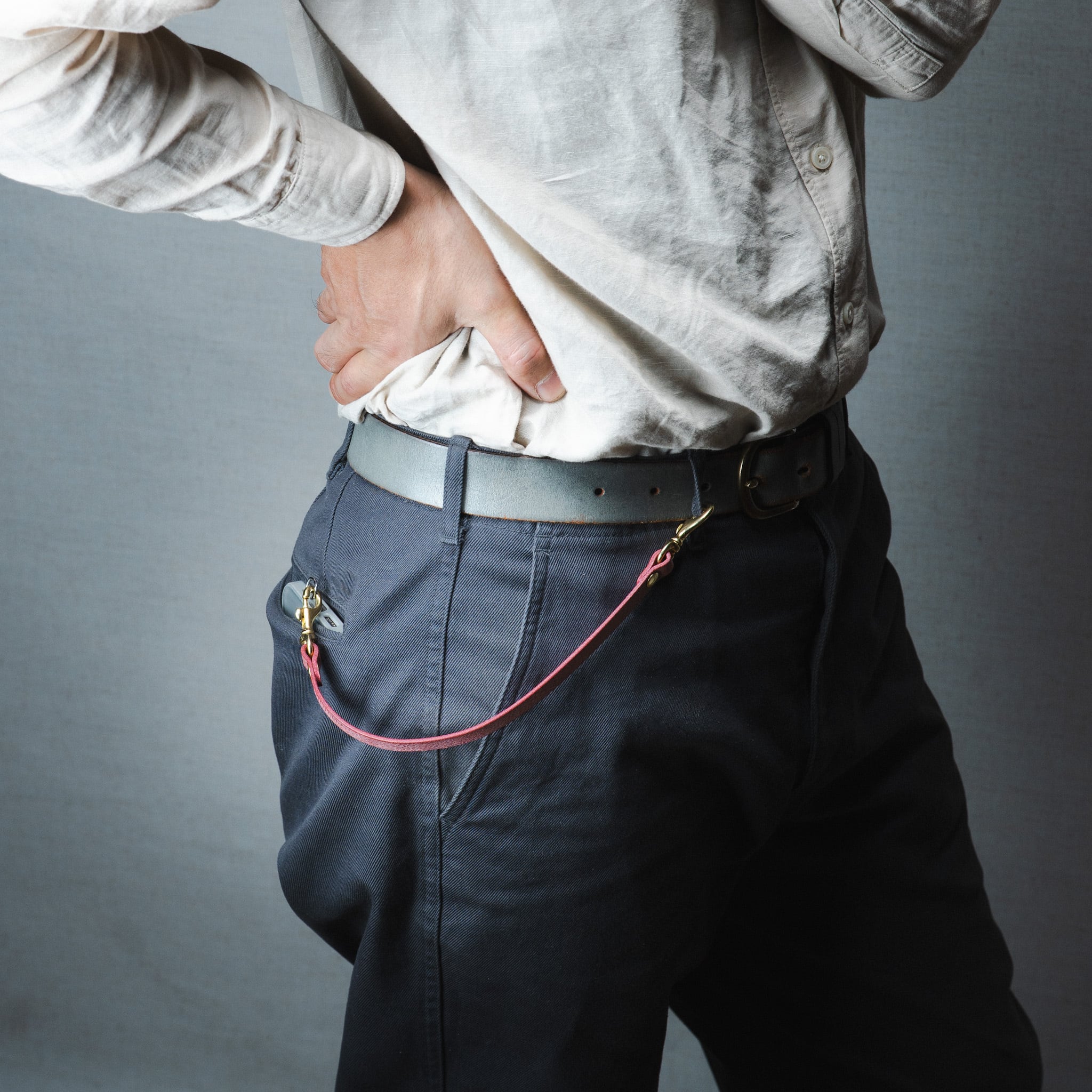 ウォレットチェーン風にもご利用いただけます。片側をスマホ、片側をベルトループにつけてアクセントにいかがでしょうか。