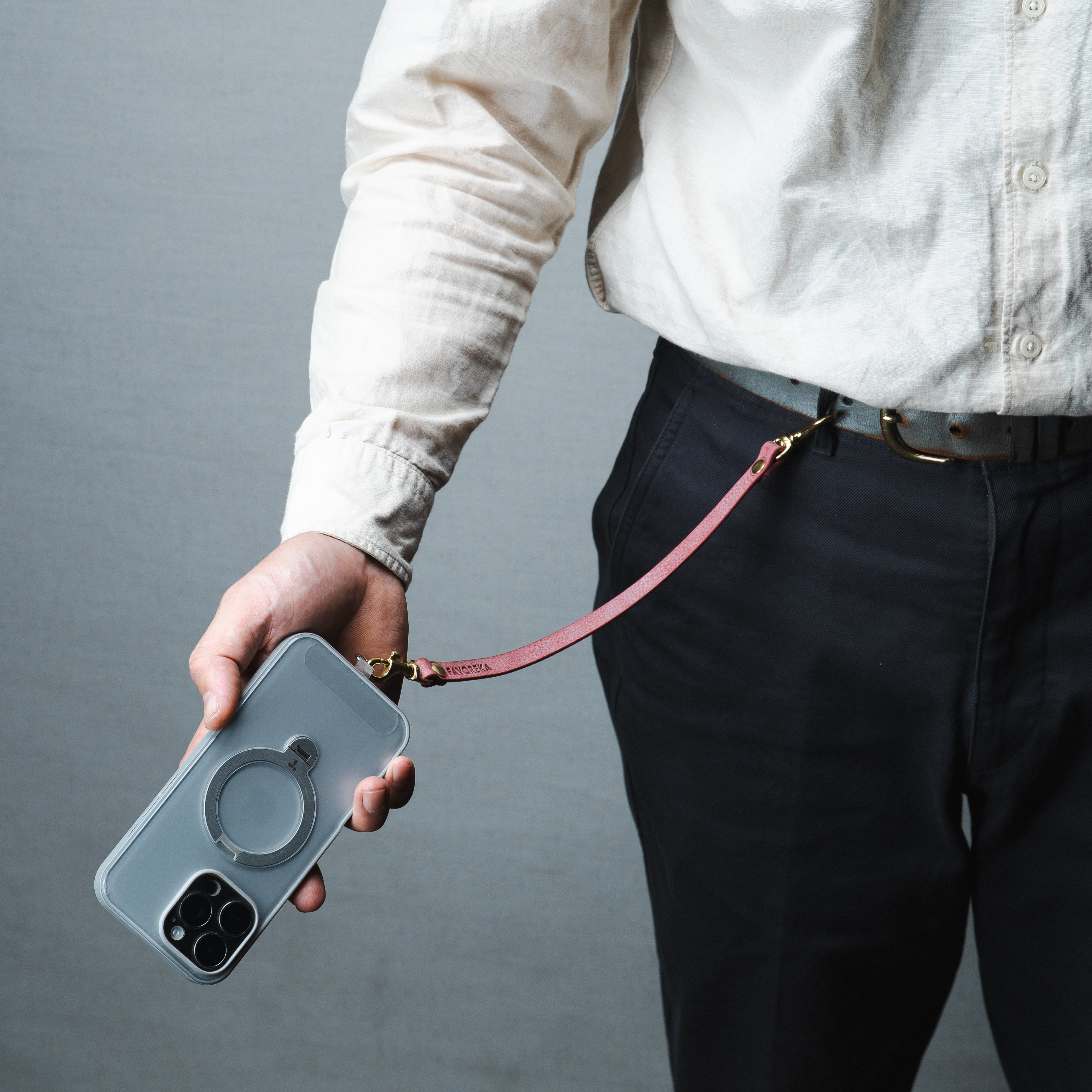 スマホのハンドストラップとしてや、ウォレットチェーン風、ベルトループ、バッグのサブストラップなど“つなぐ・掛ける”を自由にアレンジできるストラップです。