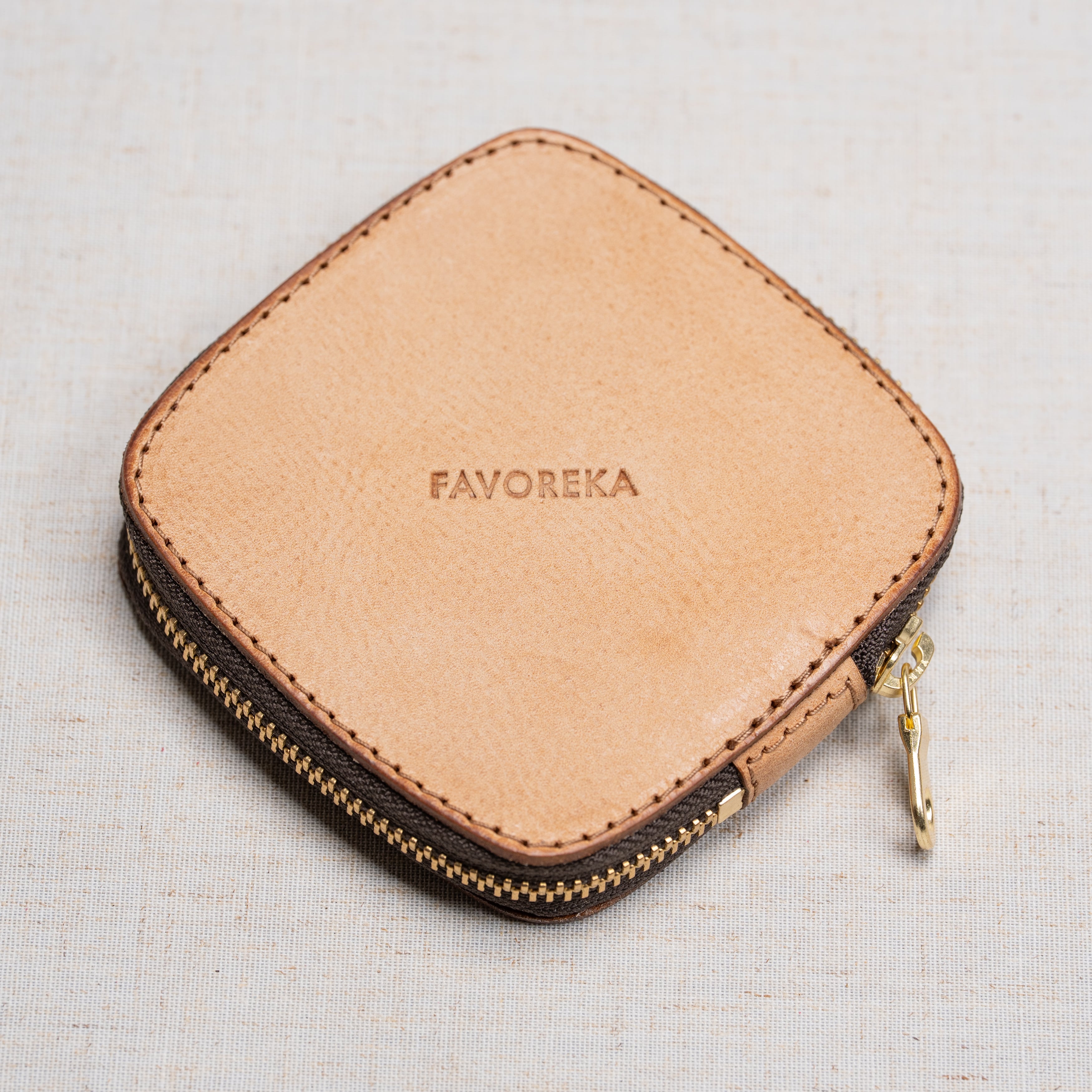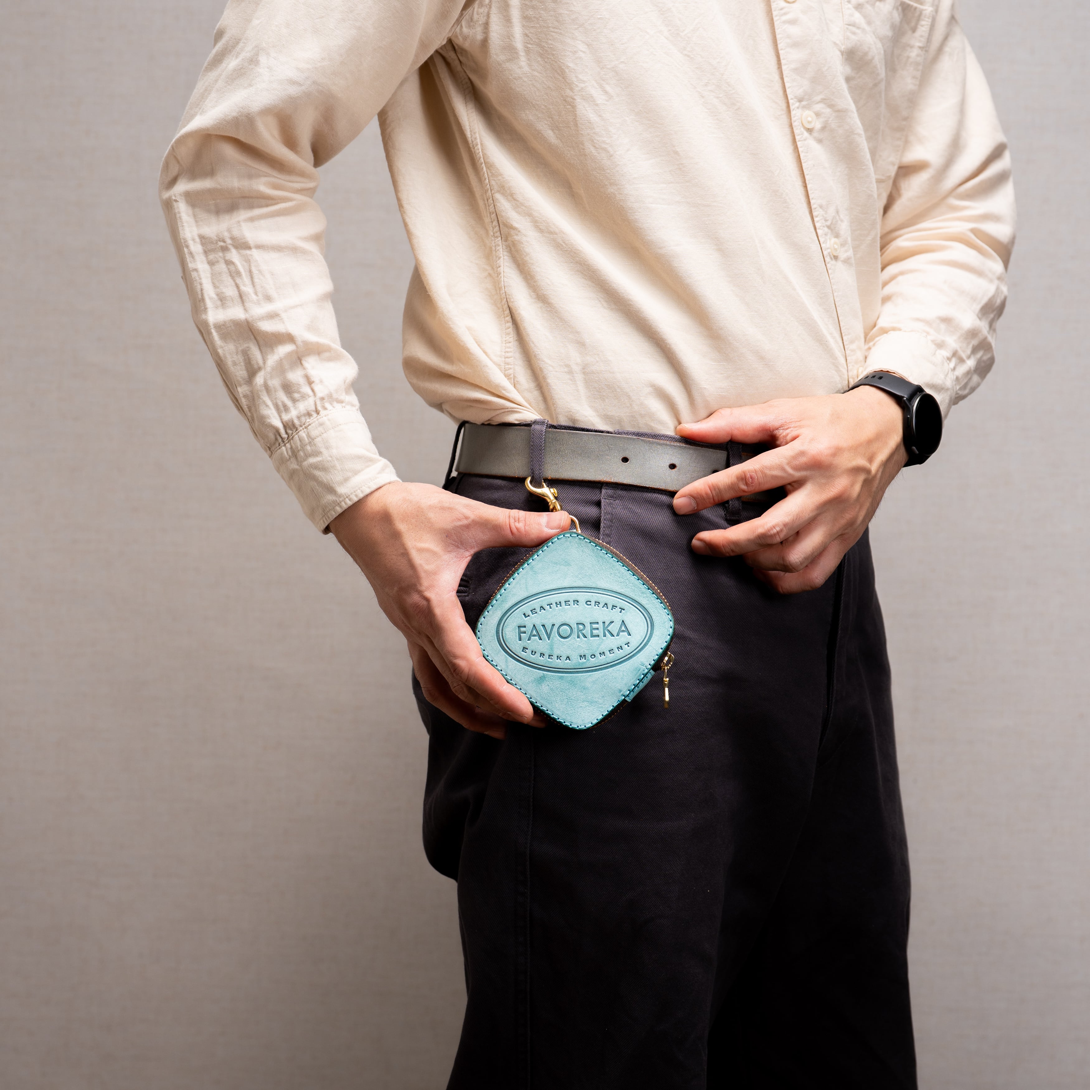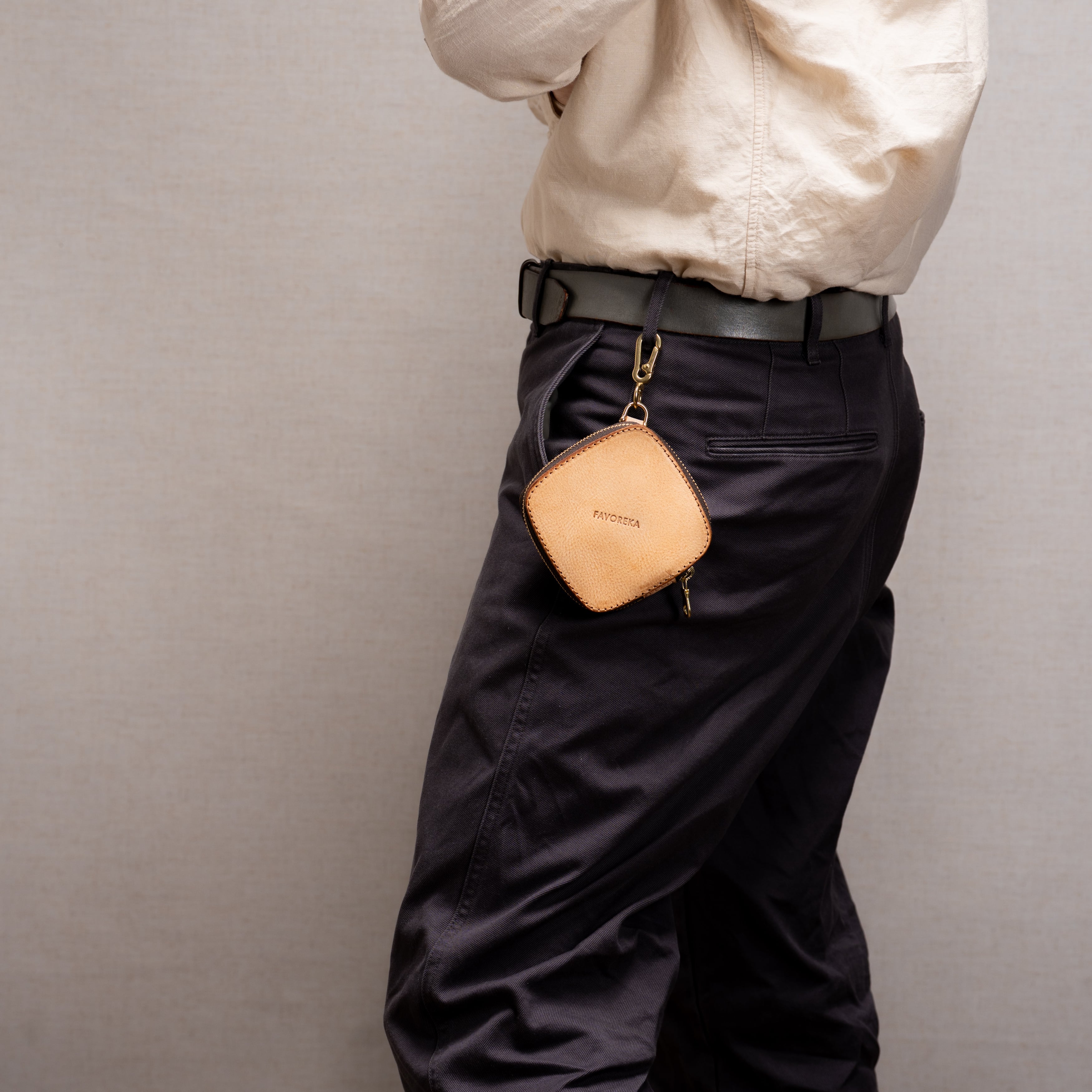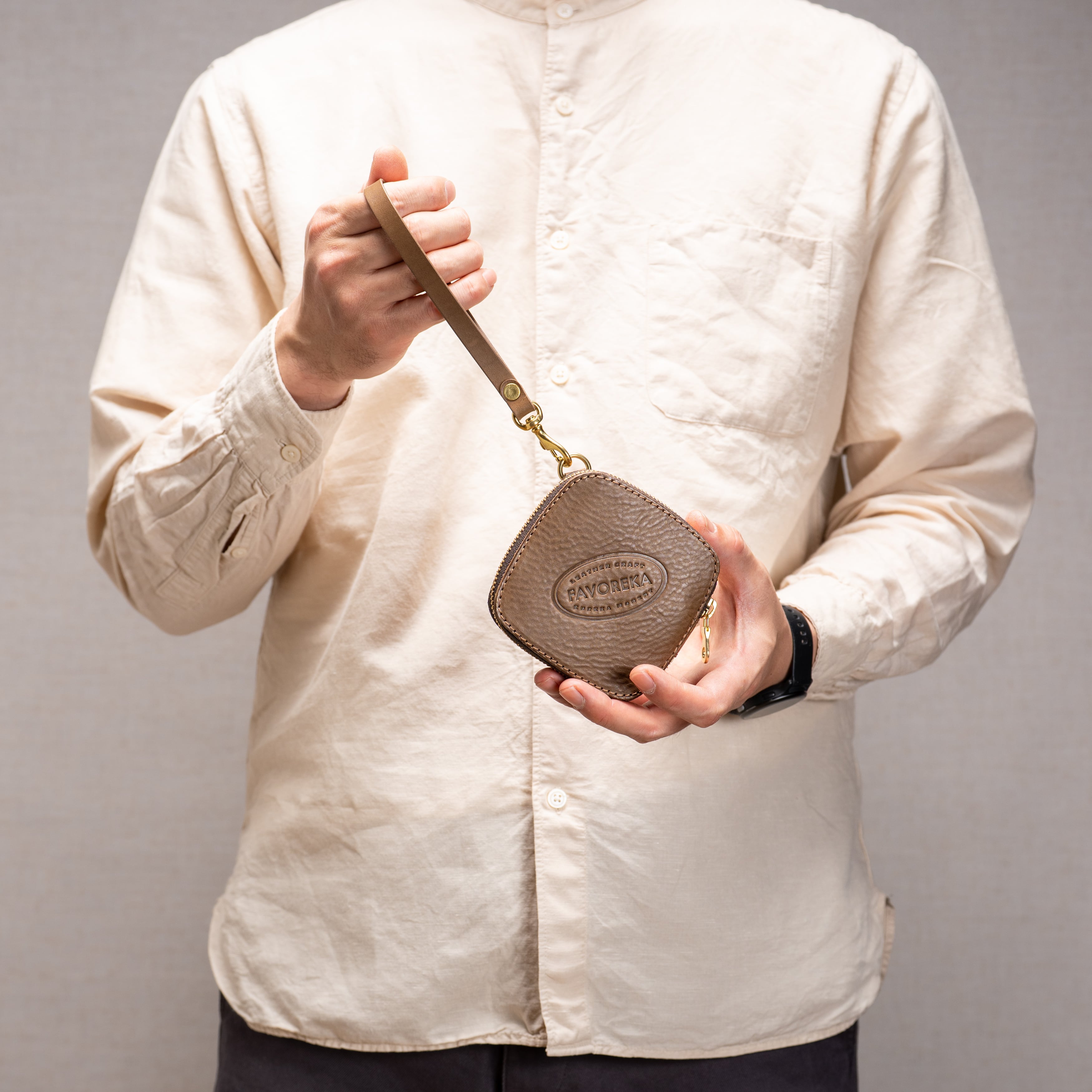 Diamant 10 ひしがた、少し大きめの宝石箱 フランス語で「ダイヤモンド」を意味するDiamant(ディアマンテ)。トランプのダイヤが由来です。 美しい四角形のフォルムが目を惹く、小さなポーチです。 楕円型の「Palma」から広がる可能性のひとつとして誕生しました。 製品仕様 革素材 アラスカ、ネブラスカ、カントリー(ブルー) サイズ 横10.5cm × 縦10.5cm × 厚み2cm 重さ 80g 10.5cmという「機能する」スクエア ただ可愛いだけでなく、本当に「使える」サイズ感を追求しました。 試行錯誤を重ねてたどり着いた10.5cm角は、バッグの中にすっきり忍ばせるのはもちろん、外に提げても様になる絶妙なバランス。角の隅々まで空間を無駄なく使える設計です。 まるで宝石箱のように、大切な必需品を静かに、そして美しく包み込みます。 Palma同様、ファスナーの開閉位置にもこだわりました。 オプション金具で吊り下げたとき、開閉の起点は時計の9時位置にあり、そこから時計回りに動きます。最終的には貝のようにフルオープンになりますが、9時から4時までなら中身がこぼれにくく、必要なものだけをサッと取り出せます。 内張りも総革を施した贅沢な仕様。 紫外線が当たりにくい内側と外側で生まれる、本革ならではのエイジング差もあわせてお楽しみください。 頼もしい容量で叶える「まとめる」収納力 四角いアイテムがデッドスペースなく角までピタッと収まる快感。10.5cm角のスクエア型は、お出かけの必須セットをまるごと受け止める頼もしさが魅力です。 ⭐︎お直しのコスメポーチとして、四角いファンデーションコンパクトの横に、リップやグロスが綺麗に並びます。 ⭐︎頼れるガジェットポーチとして、モバイルバッテリーや充電ケーブル、ACアダプターが、まるで専用ケースのようにジャストフィット。 ⭐︎毎日のケアやエチケット用品に、目薬、ハンドクリームのチューブ、あるいは複数本のリップ。大きめのタブレット菓子や飴玉を詰め込んでおくのにも最適です。 パズルを埋めるように、あなただけのアイテムが美しく収まる様子をお楽しみください。 自由なスタイルをつくるオプション ・Dカン ナスカン付きのアイテムやネックストラップと組み合わせることで、ライフスタイルに合わせた様々な拡張性が生まれます。 ・カラビナ または ナスカン 装いのアクセントとして、お好みの形を。カバンに直接取り付けたり、ズボンのベルトループに提げて小さなベルトポーチのように身軽にお使いいただけます。 選べる刻印 デフォルトの「中刻印」のほか、エンボス加工が美しい「楕円刻印」や「楕円刻印特大」からお選びいただけます。 シリーズ展開 Palmaを起点とした本シリーズは、全部で5つの形とサイズをご用意しています。 • 楕円型の Palma • 四角形の Diamant 8 および Diamant 10 • 丸い形の Luna および Petite Luna お客様のライフスタイルや用途に合わせて、ぜひあなたにぴったりのひとつをお選びください。 あなたの大切な日常を、美しいディアマンテのなかに。