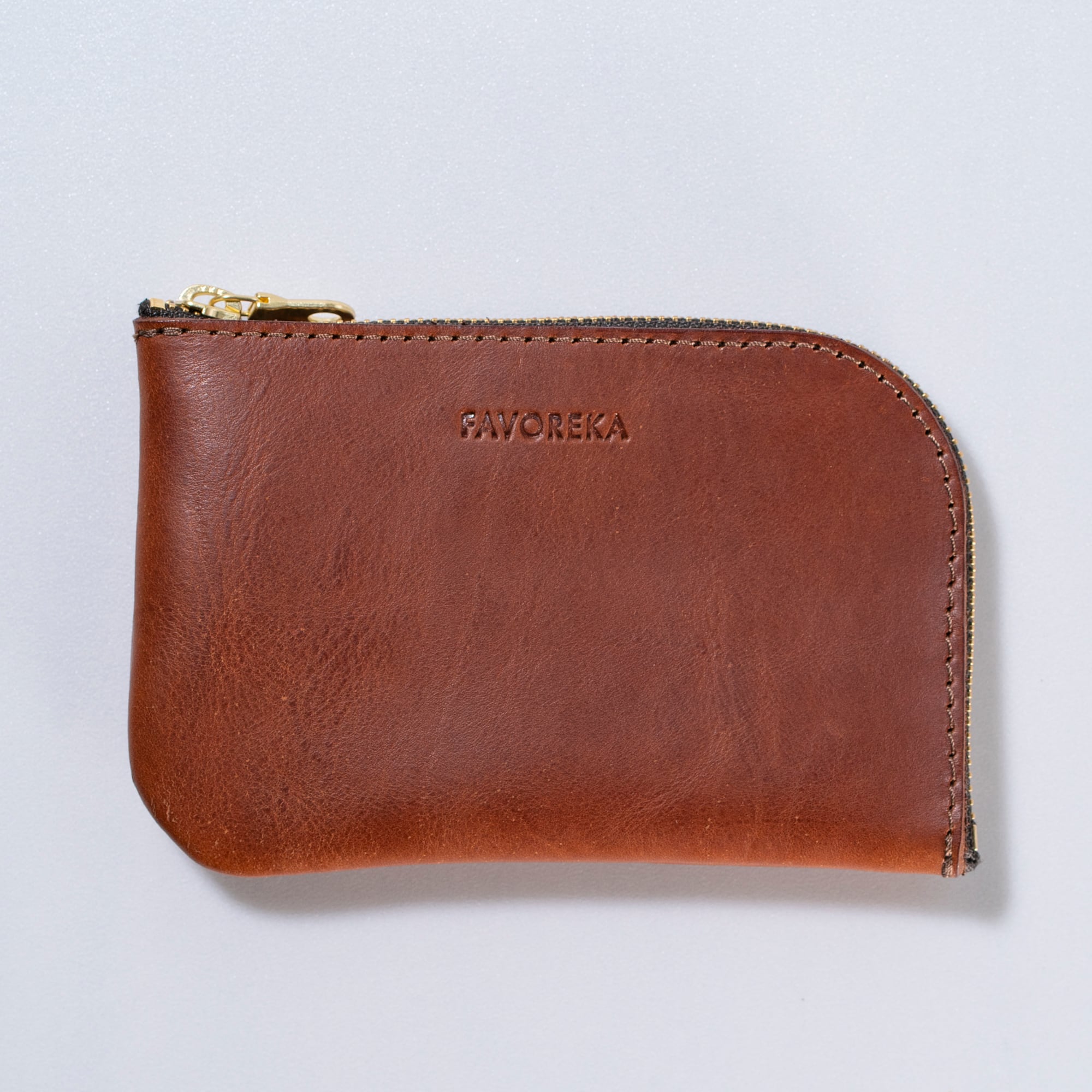 フラットポーチの中間サイズです。肉厚でしなやかな革を使用しています。